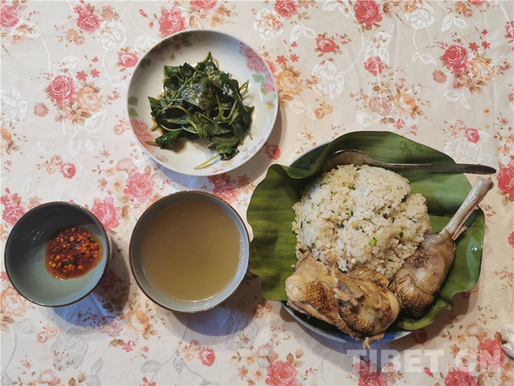 說(shuō)起僜人發(fā)傳統(tǒng)文化,不得不說(shuō)僜人的手抓飯。煮米飯、殺雞、搗辣椒……原料都產(chǎn)自深山密林。散養(yǎng)的土雞、地里的谷米和辣椒,再配上山里的香草、香料,就做成了風(fēng)味獨(dú)特的僜人手抓飯,成為僜人待待的保留節(jié)目。