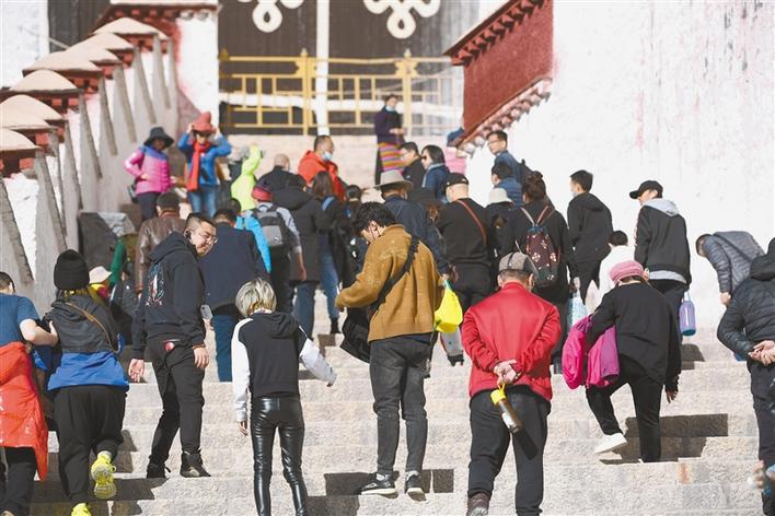 近年來,隨著“冬游西藏”活動(dòng)推出,游客實(shí)現(xiàn)了赴藏旅游成本降一半、旅游體驗(yàn)更完美的“夢(mèng)想”。圖為11月8日,游客在布達(dá)拉宮參觀游玩。記者 李洲 攝