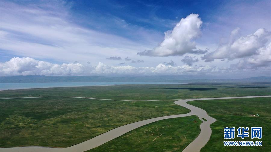 青海湖畔風(fēng)光(無(wú)人機(jī)照片)。新華社記者 張宏祥 攝