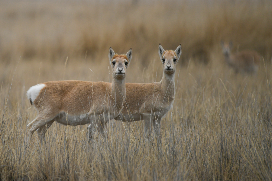 11月20日,東知布拍攝在特護(hù)區(qū)內(nèi)活動(dòng)的普氏原羚。新華網(wǎng) 潘彬彬攝