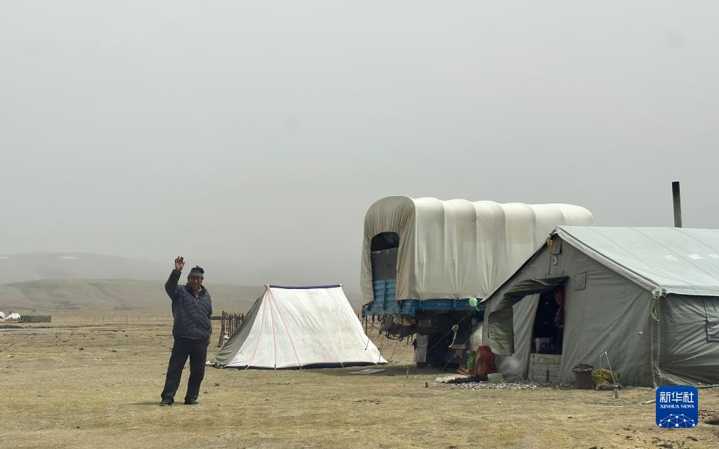 “國道之行 從雪山奔向大?!眻蟮澜M沿著219國道繼續(xù)向南,進(jìn)入仲巴縣境內(nèi),隨后,記者離開國道,拐入一條由碎石鋪成的簡易道路。繼續(xù)行駛近百公里后,草原上出現(xiàn)了數(shù)頂帳篷——這是一個牧民的放牧點(diǎn)。