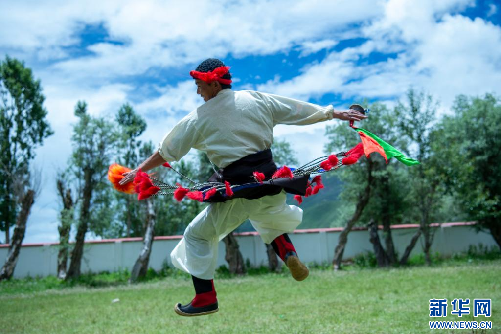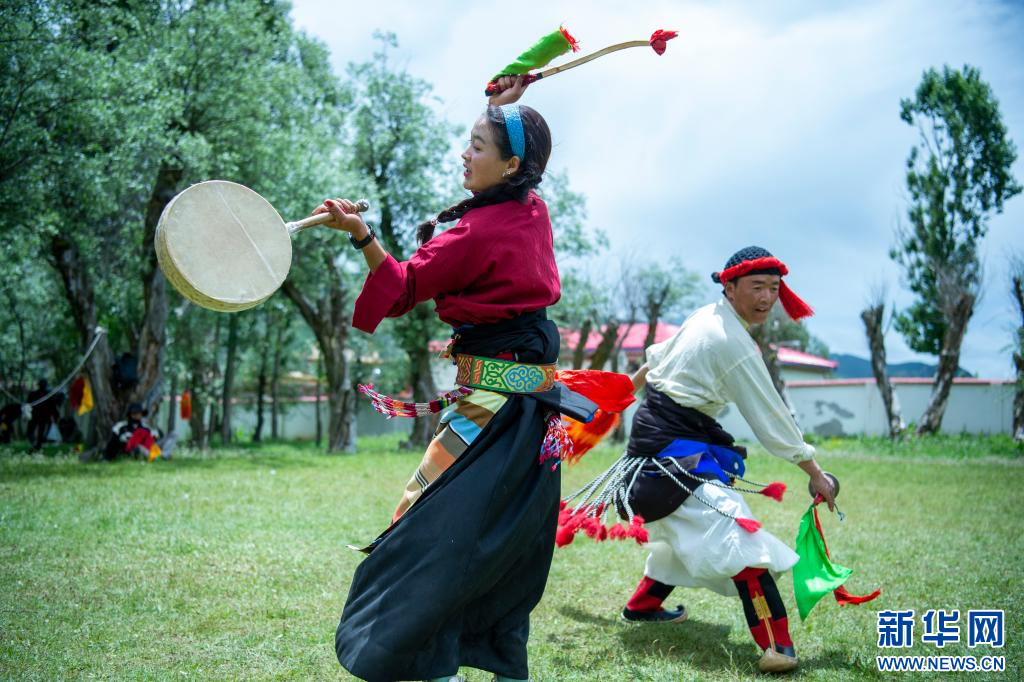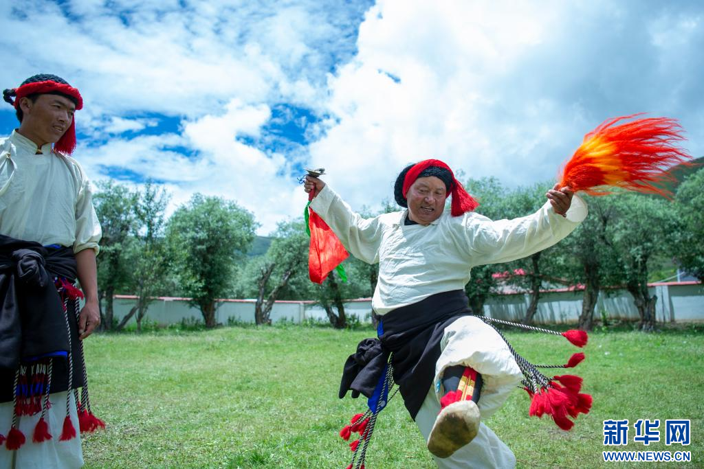 7月12日,西藏昌都市丁青縣尺犢鎮(zhèn)烏巴村文藝演出隊隊員在排練。 新華網 旦增努布 攝