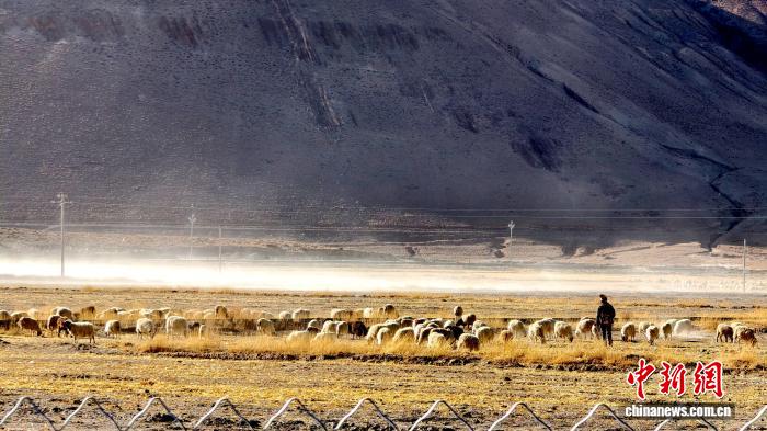 圖為定日縣長所鄉(xiāng)村民在田間放羊。貢桑拉姆 攝