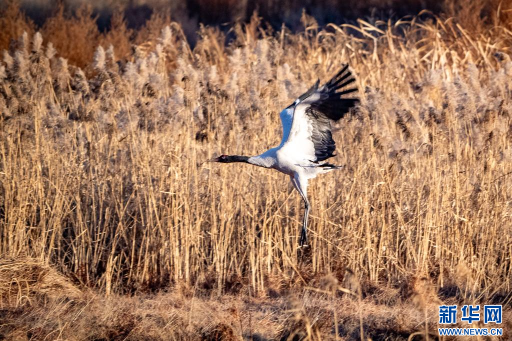 1月9日,在拉薩市拉魯濕地拍攝的黑頸鶴。新華網(wǎng) 旦增努布 攝