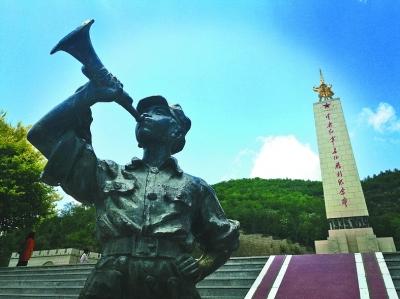位于陜西延安吳起縣的中央紅軍長(zhǎng)征勝利紀(jì)念園內(nèi)的雕塑和紀(jì)念碑。光明圖片