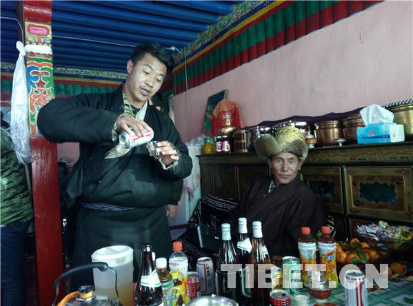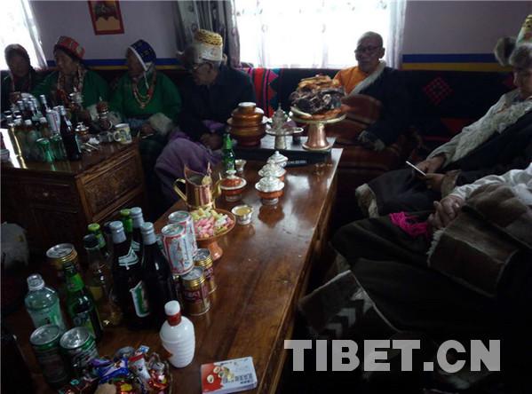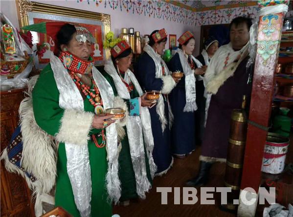 據(jù)了解,在藏歷十月三十白天,婦女們給孩子和自己洗發(fā),準(zhǔn)備過年的材料,如釀制青稞酒、制作油炸果子等。晚上10點(diǎn)左右,家中派出男性,舉行驅(qū)鬼儀式。大年初一的上午,全村的男人們騎上駿馬,到村落的山神處祭祀,更換經(jīng)幡,誦經(jīng)祈福。各家各戶回家后就在家中聚會,一般是不出去的,個(gè)別時(shí)候,家中派出兩三個(gè)青年男女手持青稞酒和酒碗,端著切瑪盒,切瑪盒內(nèi)裝有青稞、糌粑、五彩的吉祥草,帶上青稞酒,到隔壁鄰居或親戚家拜年,見面后,互相祝福吉祥,敬獻(xiàn)青稞酒,各自抓起對方切瑪盒內(nèi)的青稞粒拋向空中,摔三下,祭拜天、地、神,祈禱新年吉祥如意。