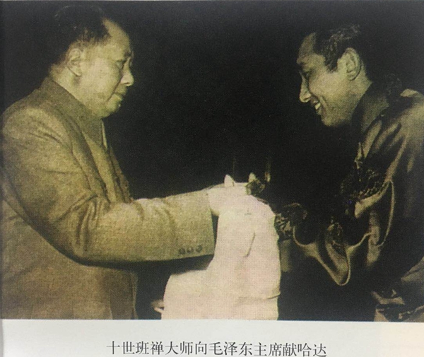 圖為十世班禪向毛澤東主席敬獻哈達。 圖片翻拍自《班禪額爾德尼評傳》