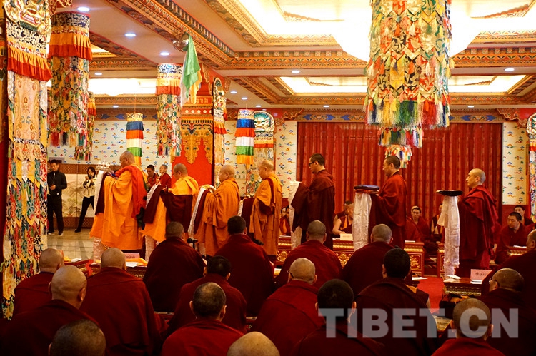 法會禮請全國政協(xié)常委、中國佛教協(xié)會副會長班禪額爾德尼o確吉杰布拈香主法,中國藏語系高級佛學(xué)院領(lǐng)導(dǎo)、經(jīng)師、學(xué)員及宗教界教職員工約130人參加法會。