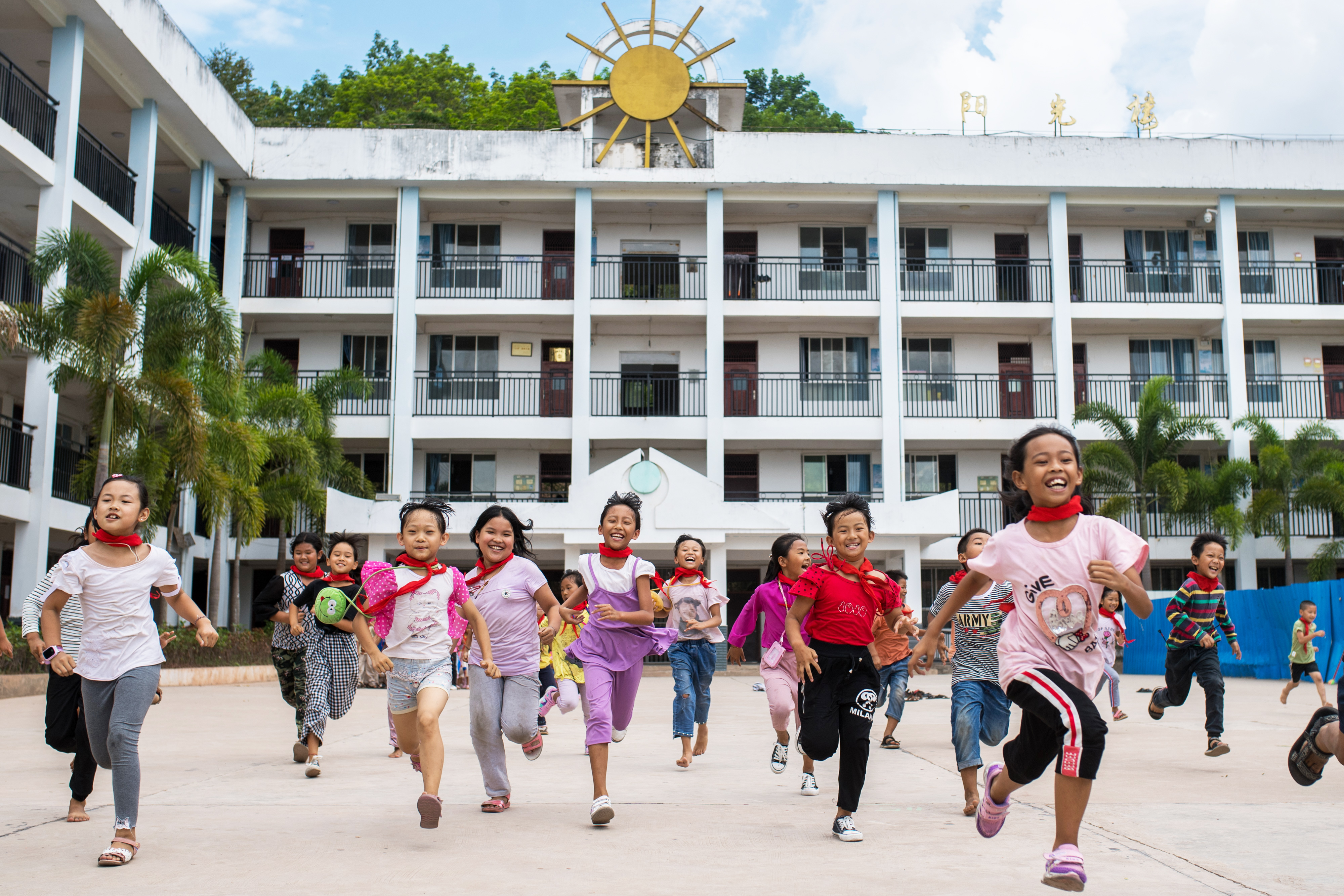 云南西雙版納基諾山基諾族鄉(xiāng)民族小學學生在跑步(2019年6月11日攝)。