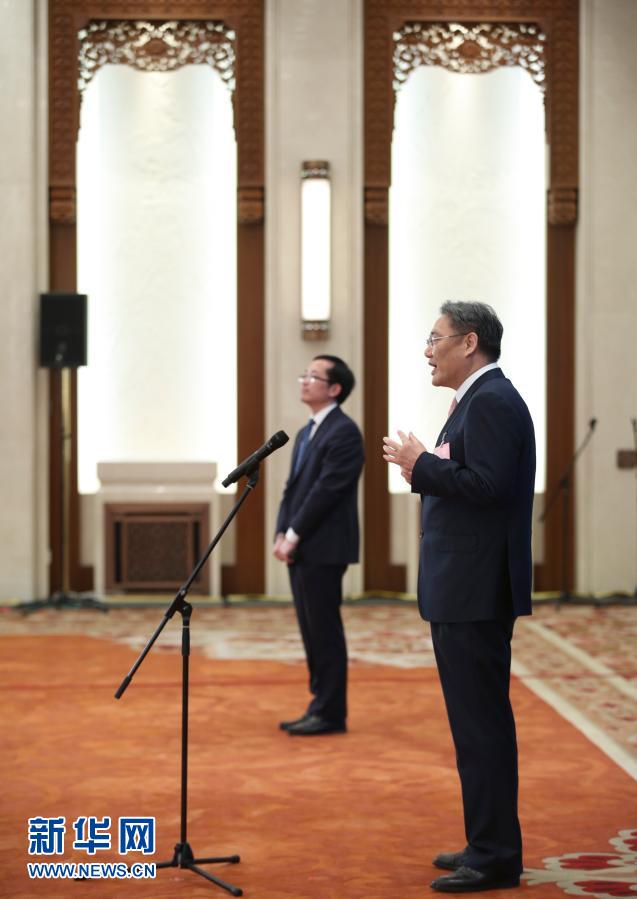 3月8日,第十三屆全國人民代表大會第四次會議舉行第二場“部長通道”采訪活動。這是科學(xué)技術(shù)部部長王志剛(右)通過網(wǎng)絡(luò)視頻方式接受采訪。