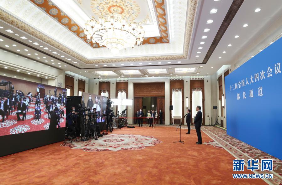 3月8日,第十三屆全國人民代表大會第四次會議舉行第二場“部長通道”采訪活動。這是商務(wù)部部長王文濤步入“部長通道”,準(zhǔn)備通過網(wǎng)絡(luò)視頻方式接受采訪。