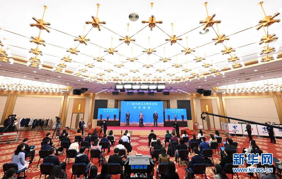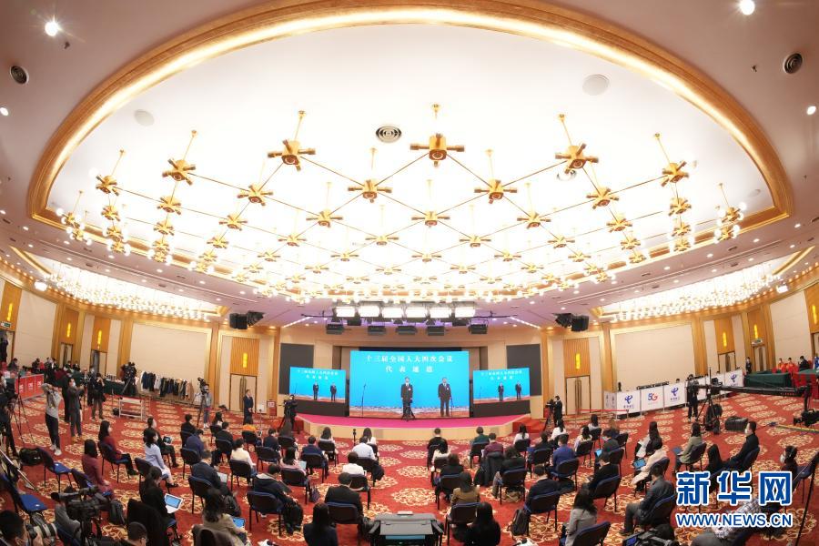 3月8日,第十三屆全國人民代表大會(huì)第四次會(huì)議舉行第二場(chǎng)“代表通道”采訪活動(dòng)。這是記者在分會(huì)場(chǎng)通過網(wǎng)絡(luò)視頻方式采訪。新華社記者 陳曄華 攝