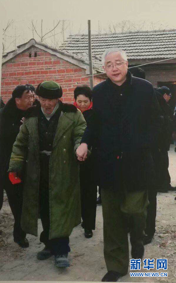 時(shí)任安徽省政協(xié)副主席的李宏塔(前右)在安徽阜陽市潁東區(qū)插花鎮(zhèn)慰問困難群眾(2011年1月14日攝)。新華社發(fā)