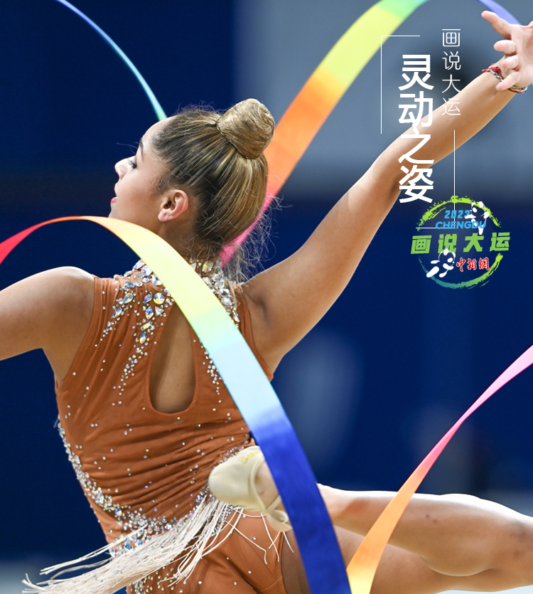 在成都第31屆世界大學(xué)生夏季運(yùn)動(dòng)會藝術(shù)體操的賽場上,運(yùn)動(dòng)員們用柔和挺拔的身姿,向我們詮釋了青春的靈動(dòng)之美。輕盈流暢的體操動(dòng)作搭配剛?cè)岵?jì)的舞姿,這是力與美的結(jié)合,更是柔與韌的藝術(shù)!圖為南非選手DEWAN Azra參加藝術(shù)體操個(gè)人全能決賽。