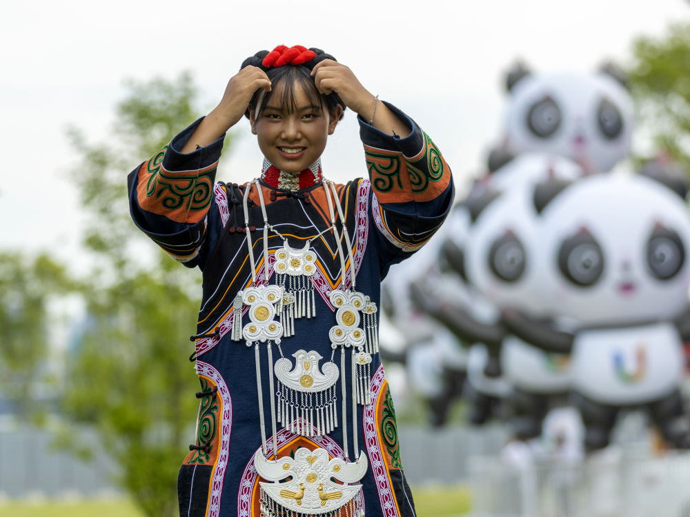 7月23日,準備參加成都大運會開幕式彩排的吉好有果。新華社記者 沈伯韓 攝