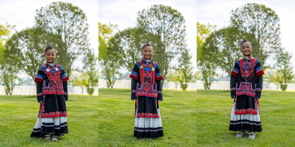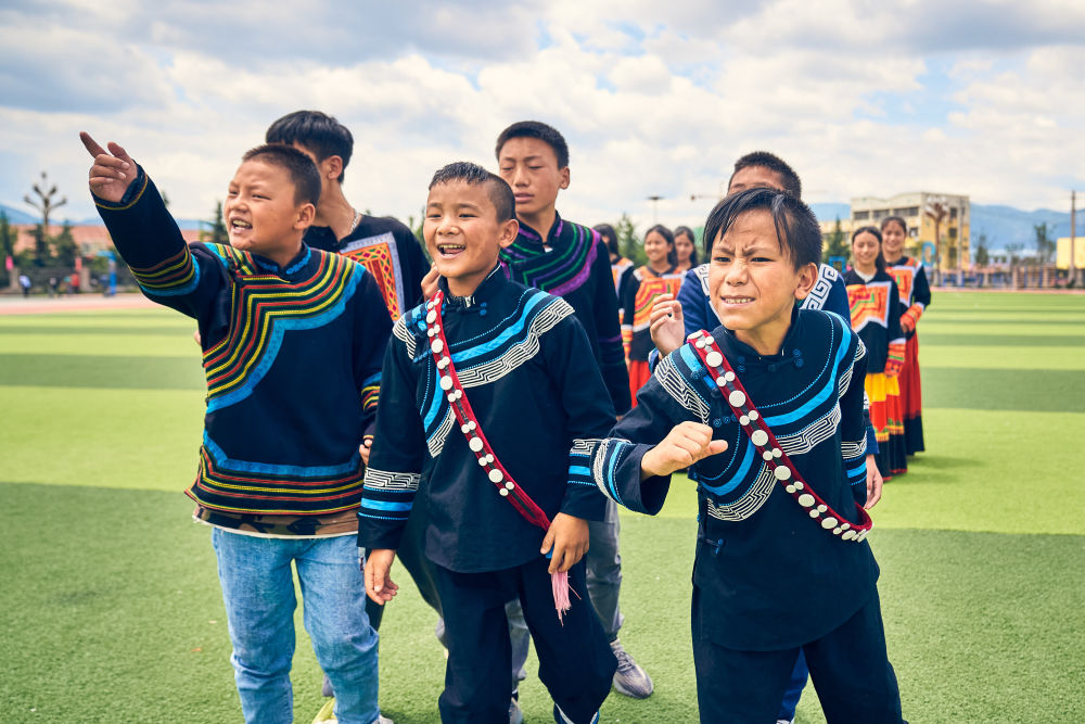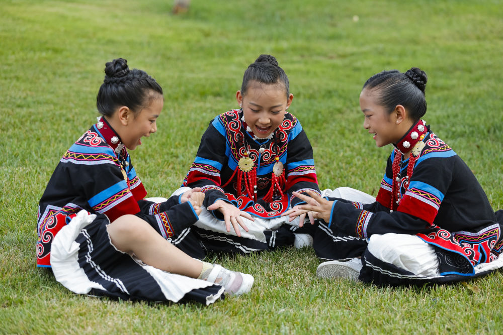 7月2日,在昭覺縣萬達融創(chuàng)紅絲帶愛心學校參與排練的俄地惹漢(前左)、馬杰英(前中)和吉合拉作(前右)。(受訪者供圖)