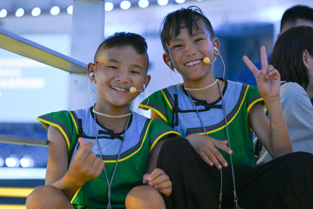 7月16日,在成都大運會開幕式彩排現(xiàn)場拍攝的候場中的吉子醫(yī)生(左)和吉朵史拉(右)。新華社記者胥冰潔 攝